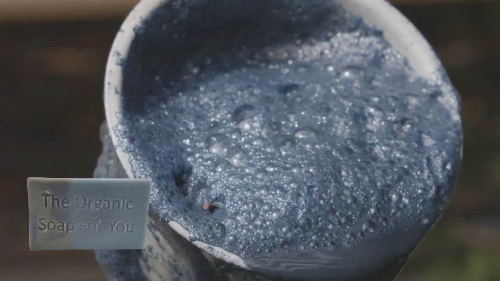 Ingredients: Saponified Vegetable Oils (Indigo Naturalis (Indigo) Leaf Powder infused Olive OIl, Lithospermum Erythrorhizon (Gromwell) Root Infused Sunflower Seed Oil, Cocos Nucifera (Coconut) Oil, Ricinus Communis (Castor) Seed Oil, Chamomile and Lavender herbs infused in Distilled Water, Butyrospermum Parkii (Shea) Butter, Shorea (Sal) Butter, Illite (Cambrian Blue Clay), Citrus Aurantifolia (Lime) Oil, Piper Nigrum (Black Pepper) Oil, Cedrus Deodora (Cedarwood) Oil, Cupressus Sempervirens (Cypress) Oil, Pinus Sylvestris (Black Pine) Oil, Thuja Occidentalis (Cedar Leaf) Oil.
